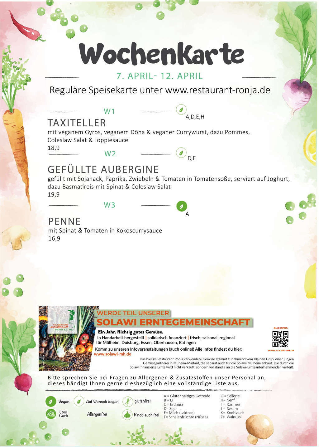Auf unserer vielfältigen Speisekarte finden Sie viele klassische vegetarische & vegane Gerichte wie auch spannende neue Kreationen.